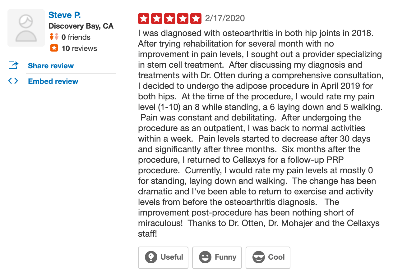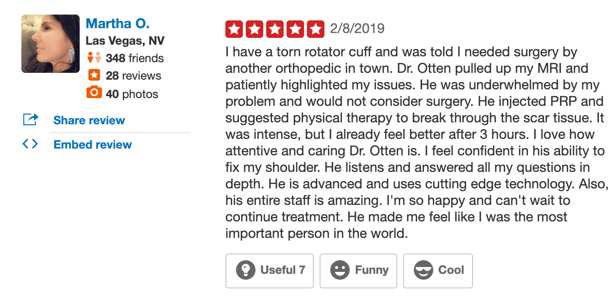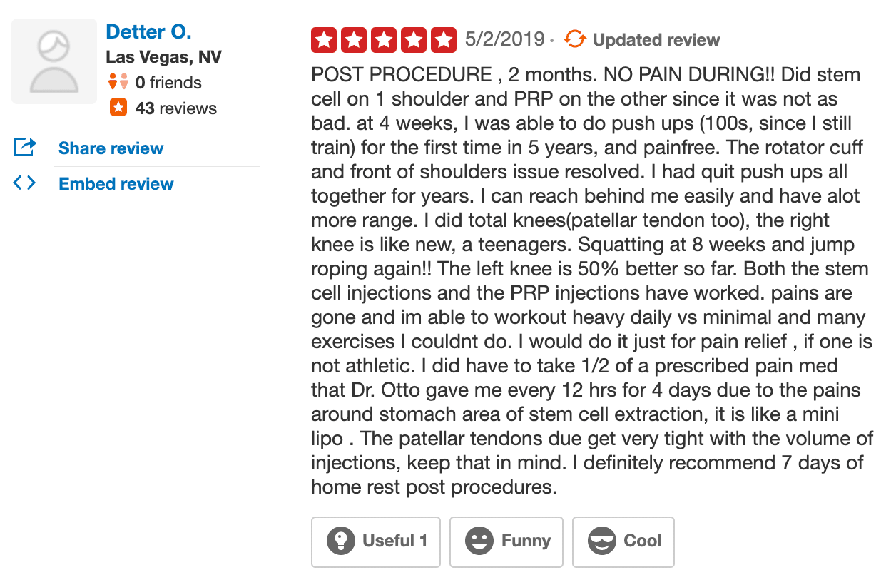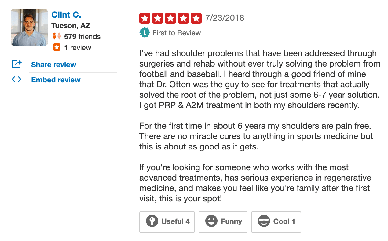 “Since those injections I have been able to bring my arm up to probably 90% of where it had been before.”
